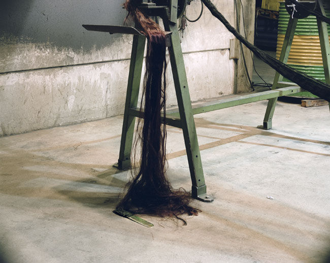 In the face of the impending demolition of the factory, I summoned the wailers so that they wept, so that they performed the theatre of pain caused by the inevitable death of the space. All operatives were assembled for the funeral banquet which, following tradition, was presided over by the deceased: the industrial building at the time it went out of business, just before it was brought down. Lastly, I created the installation art piece Lacrymatories, with threads and black hair spinning a spiderweb among the machines. This funeral installation was built in a ritual manner and remained inside until it passed away with the demolition of the building. Placed within, its mission was to accompany the deceased on its journey to the afterlife. ©